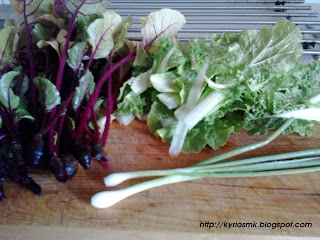 Z końcem czerwca udało mi się zebrać m.in. młode buraczki, kapustę pekińską i cebulkę ...